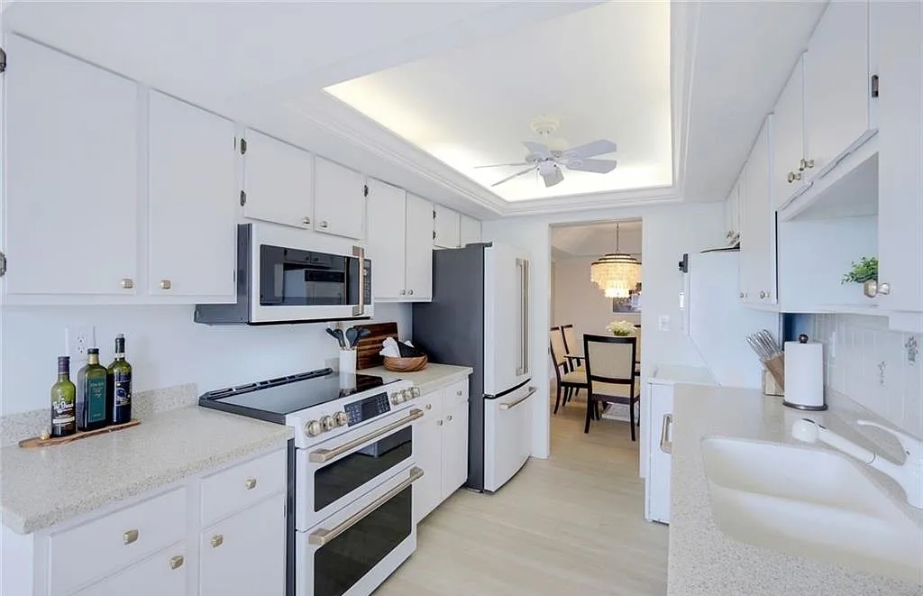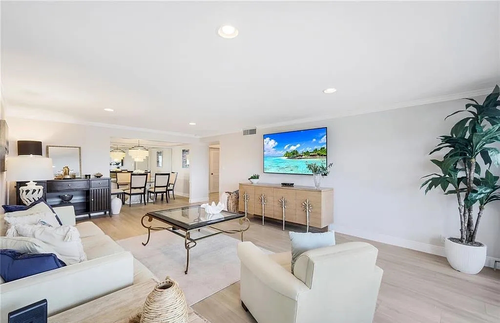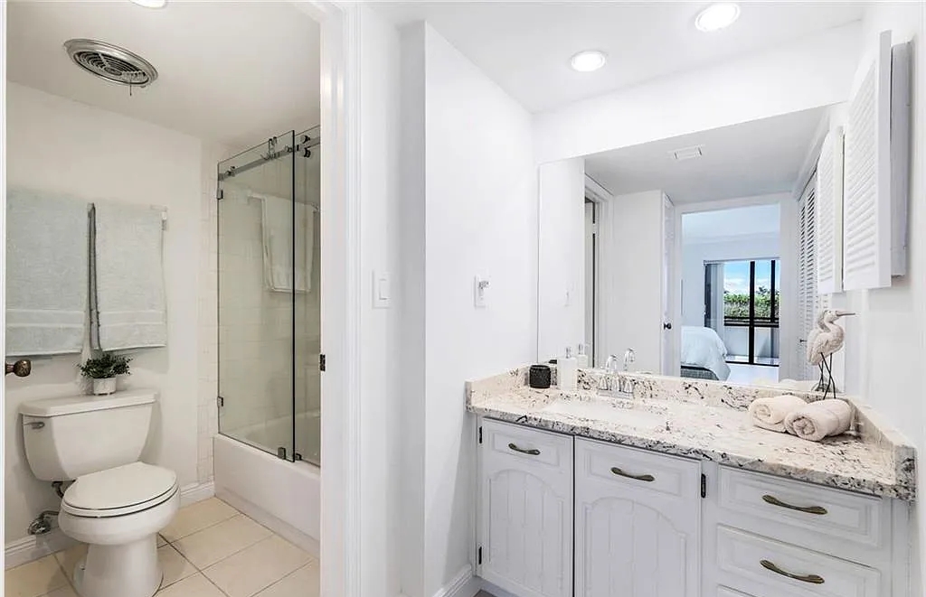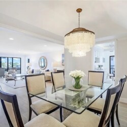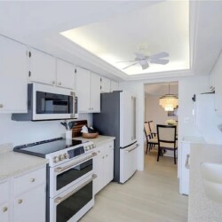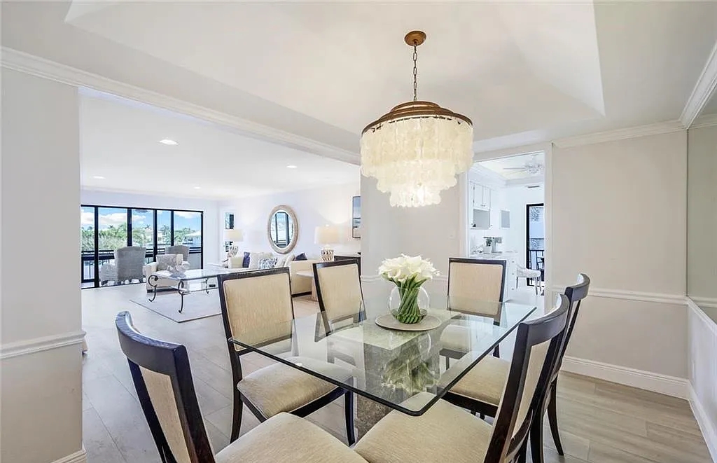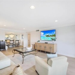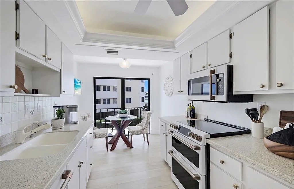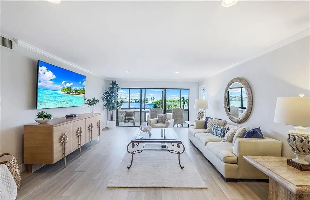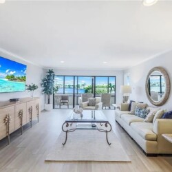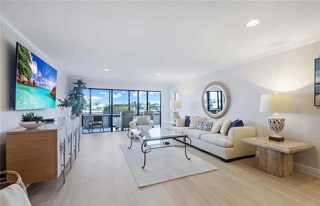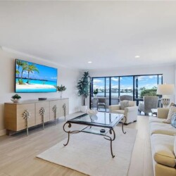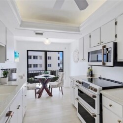 This elegant three-bedroom coastal apartment offers 1,767 square feet of refined living space, beautifully designed with marble and wood flooring, impact-resistant windows, and high-end finishes throughout. The open great room seamlessly connects to a screened lanai and balcony, creating a bright and inviting atmosphere ideal for both relaxation and entertaining. The gourmet kitchen features premium appliances, double ovens, and a spacious eat-in dining area perfect for gathering. A split-bedroom layout provides privacy and comfort, with each bedroom offering walk-in closets and stylish en-suite baths. Ideal for guests seeking a sophisticated coastal retreat that blends modern luxury with timeless charm in the heart of Naples.