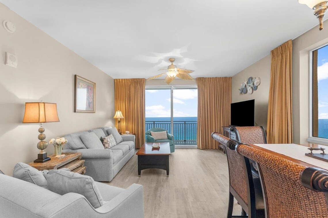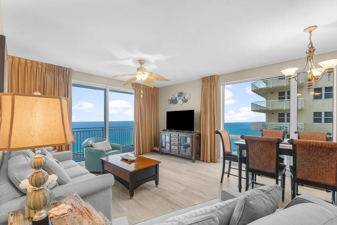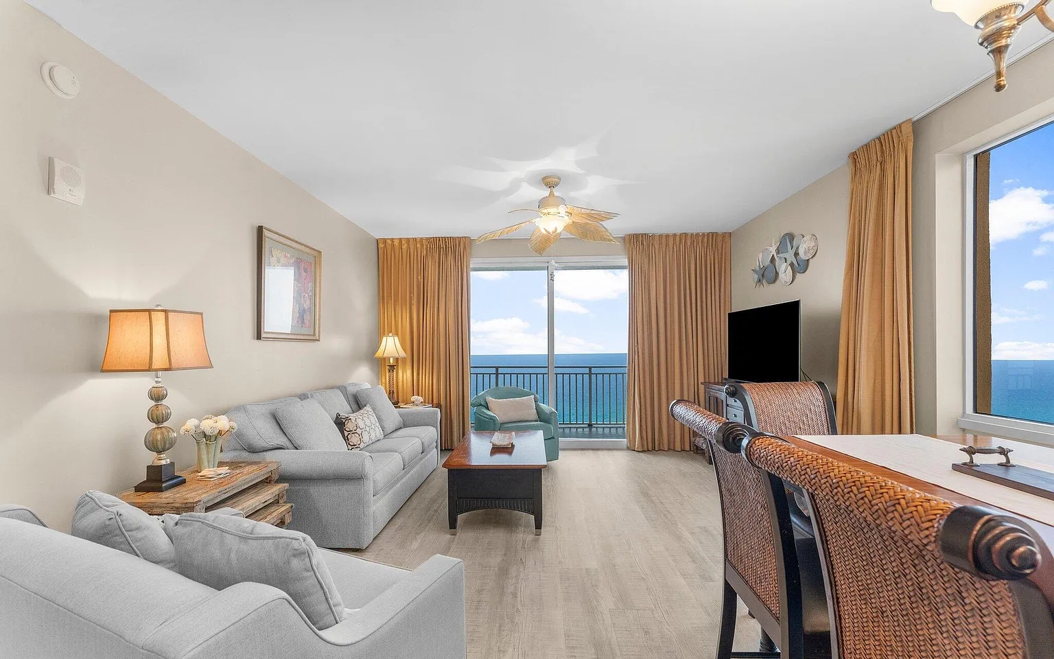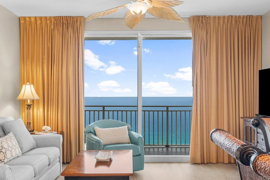 This luxurious three-bedroom Gulf-front apartment offers an unforgettable beachfront experience with sweeping panoramic views of the Gulf of Mexico. The spacious open-plan living area is beautifully designed with elegant coastal décor and a fully equipped modern kitchen, creating the perfect blend of comfort and sophistication. Guests can enjoy direct access to the beach, unwind by the resort-style pool, and explore nearby restaurants, boutique shops, and local attractions. Ideal for couples or families seeking a stylish and relaxing retreat with breathtaking ocean vistas in the heart of Panama City Beach.