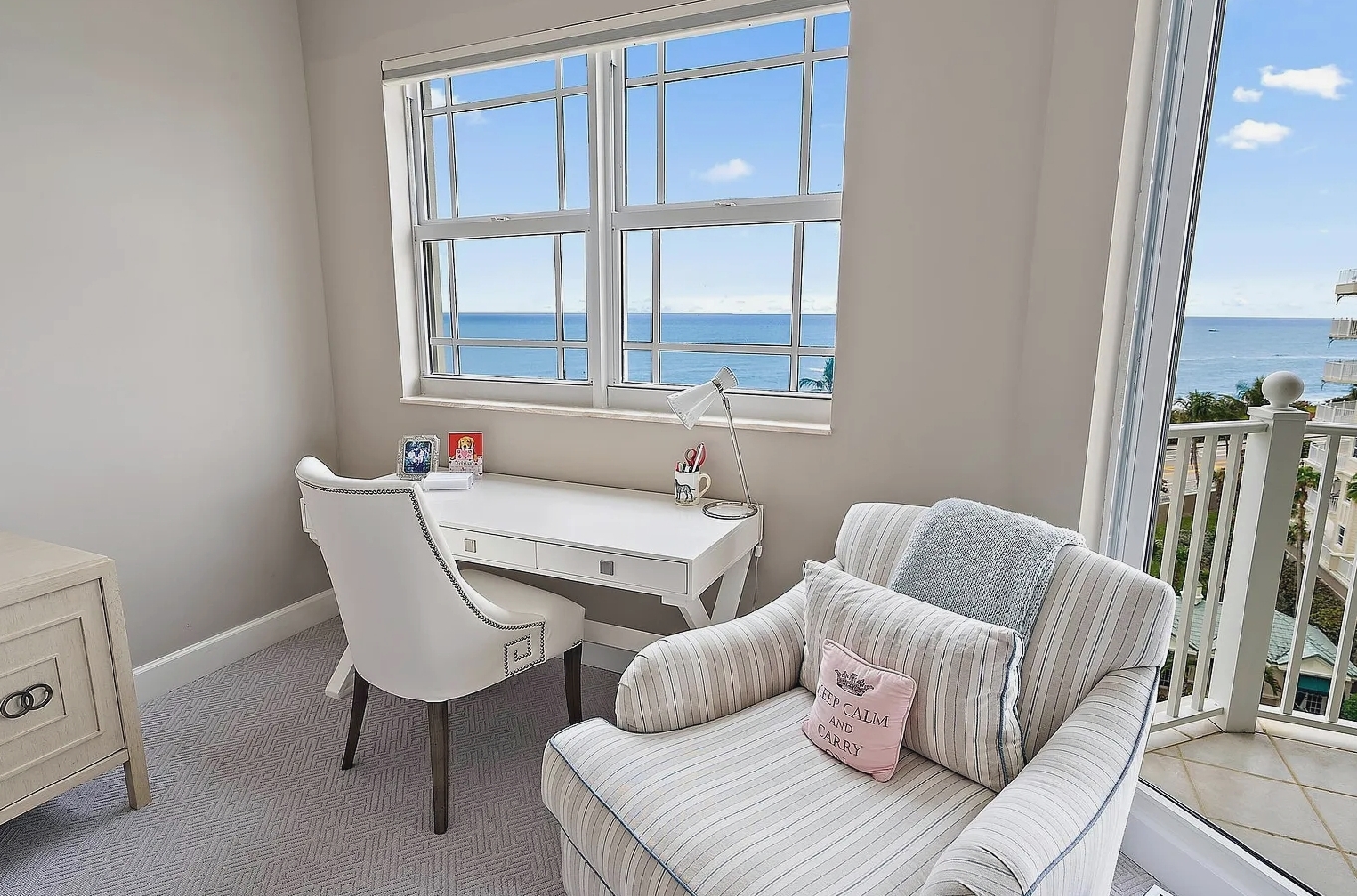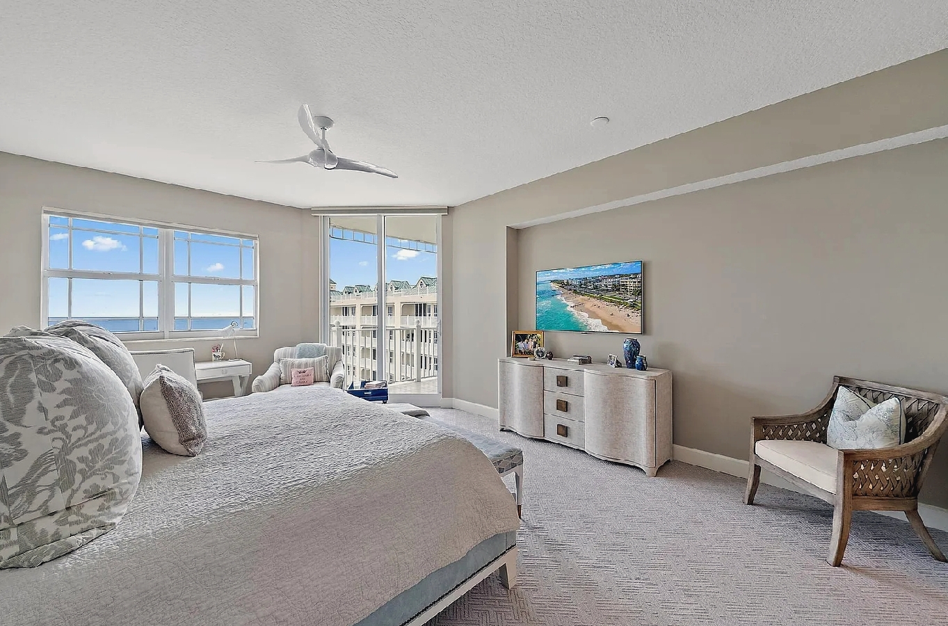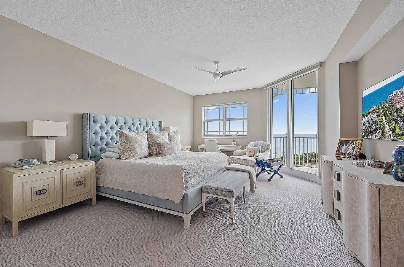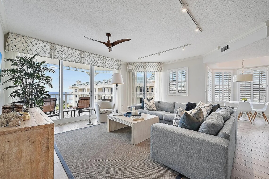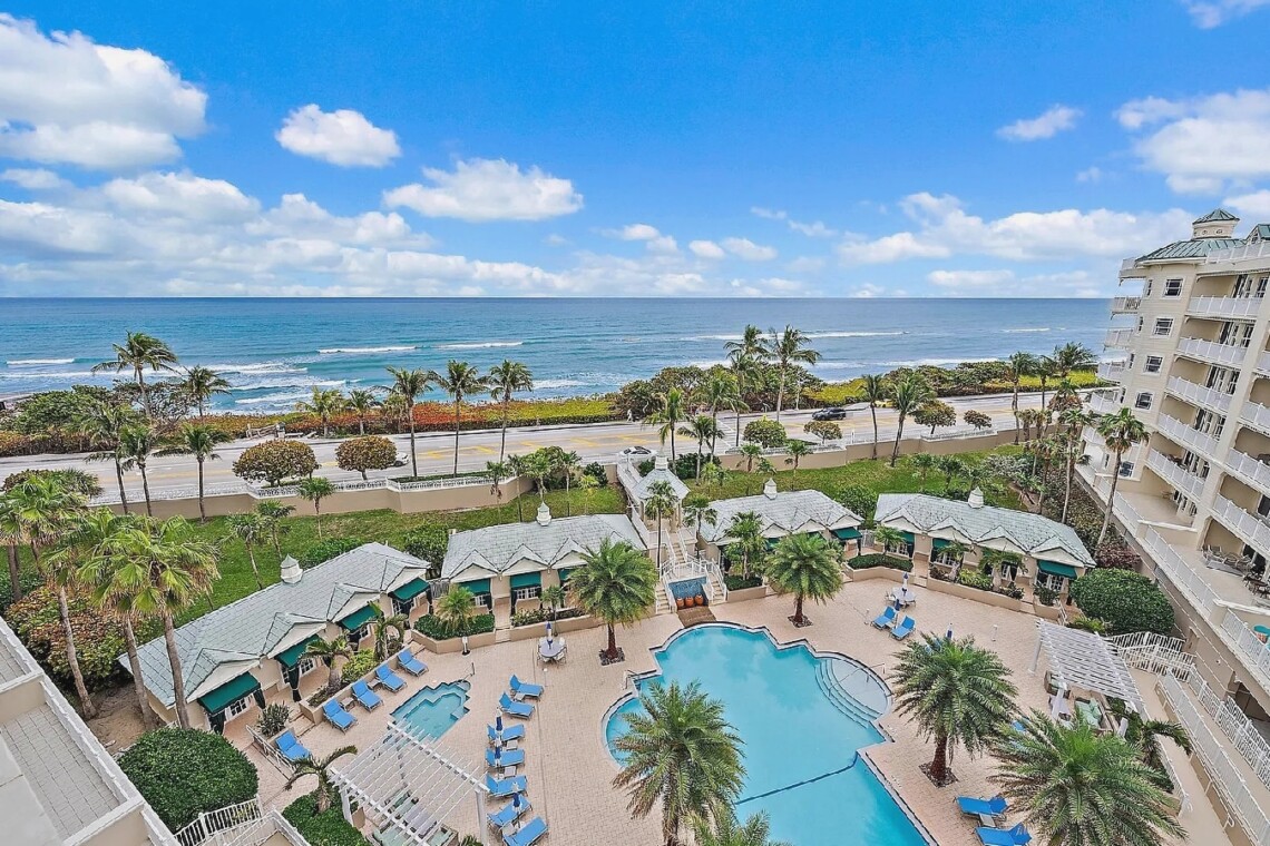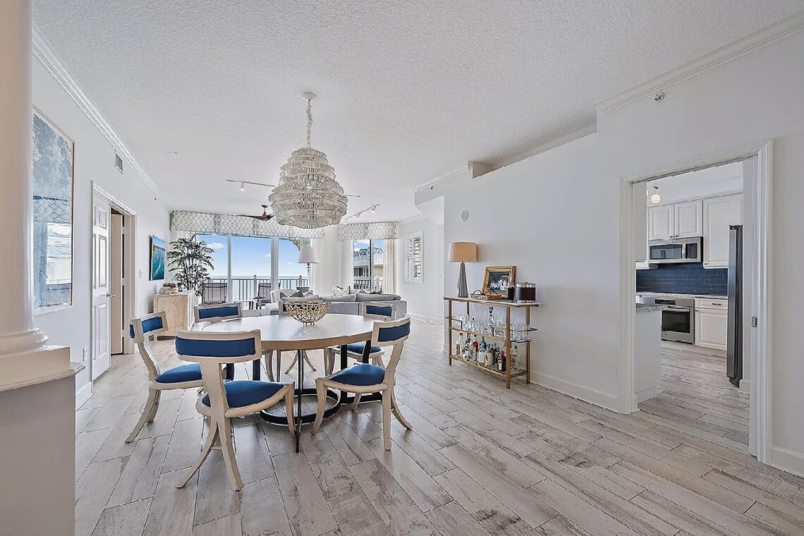 This luxurious three-bedroom oceanfront penthouse offers breathtaking panoramic views of the Atlantic Ocean and stunning sunrise and sunset vistas from multiple private balconies. Designed for both relaxation and entertaining, the spacious open living areas feature elegant designer finishes, motorized blinds, and a chef’s kitchen equipped with premium appliances, a wine cooler, and a cozy breakfast nook. The lavish primary suite boasts sweeping ocean views, a spa-inspired bathroom with a freestanding tub, and expansive walk-in closets. Guests can indulge in resort-style amenities including a heated oceanfront pool and spa, tennis courts, a fitness center, clubhouse, billiards, and 24-hour gated security. With direct beach access and close proximity to fine dining, golf courses, marinas, and local attractions, this penthouse provides the perfect balance of sophistication, comfort, and seaside serenity.