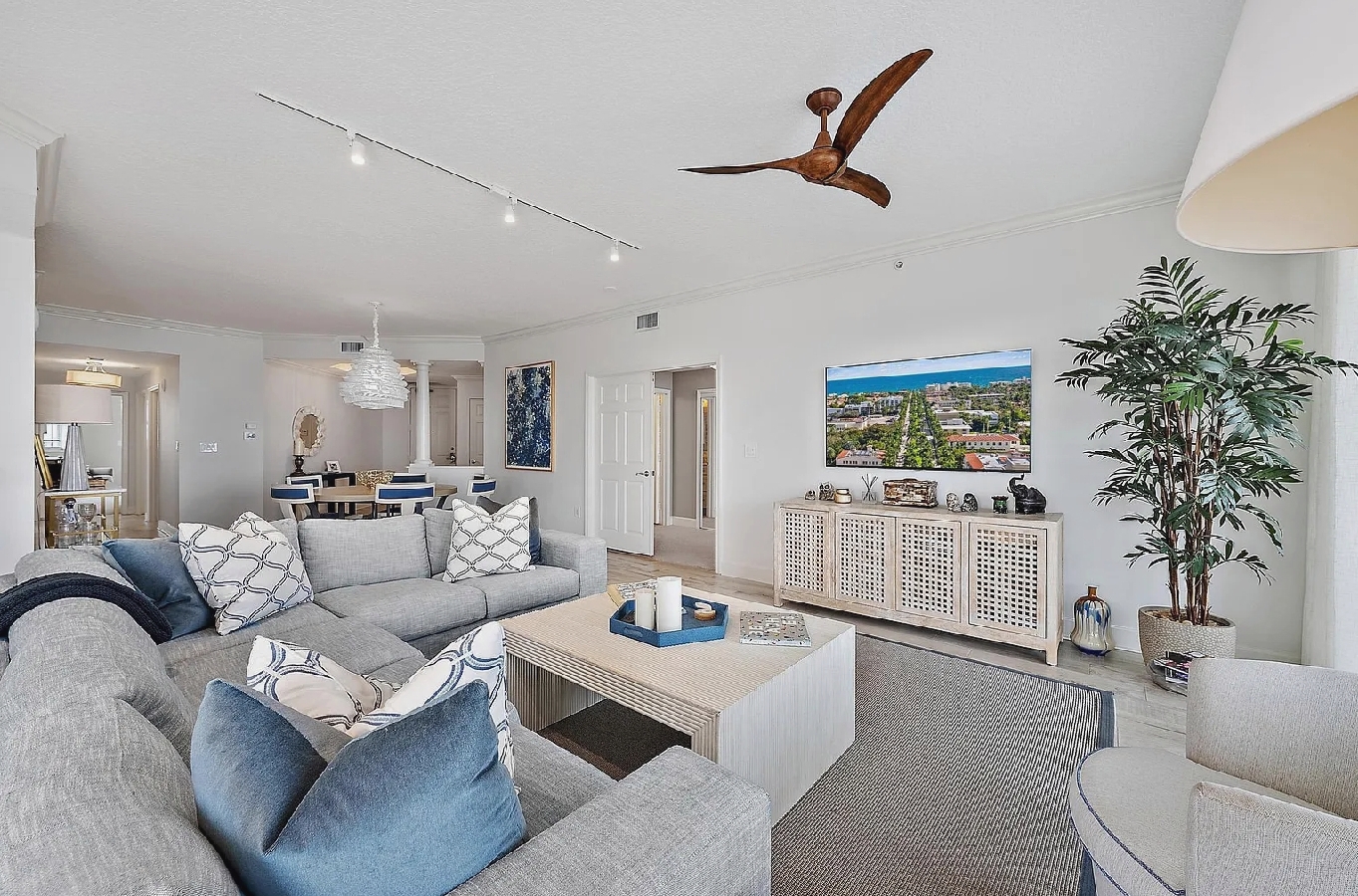 Sophisticated Three-Bedroom Coastal Apartment with Fireplace