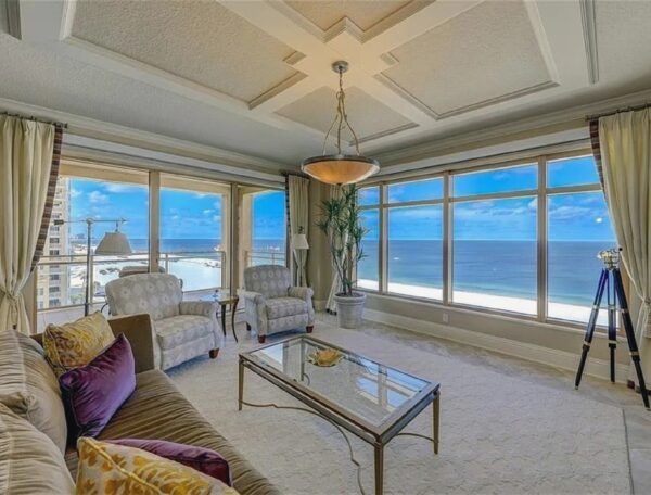 Spectacular vistas await in this impeccably designed Sandpearl Resort Gulf Front Residence. Boasting panoramic Gulf views this pristine award-winning beach from almost every room, along with breathtaking sunsets and views of Pier 60. Boasting an expansive powdery sand Gulf beach, this luxurious coastal lifestyle includes 24-hour concierge services, beachfront resort pool, poolside cabanas, spa, state-of-the-art fitness center, steam/sauna and secured parking in a large pet-friendly community.